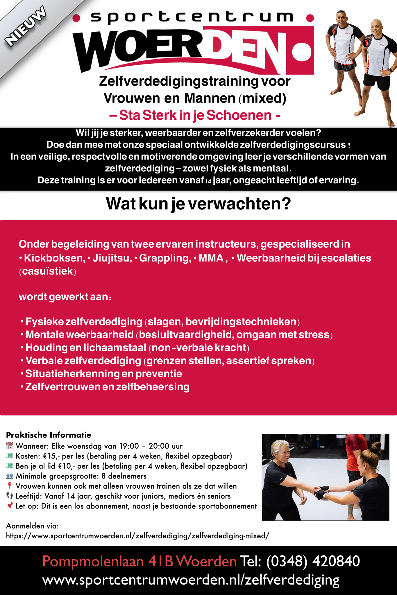 je verschillende vormen van zelfverdediging – zowel fysiek als mentaal. Deze training is er voor iedere vrouw en man vanaf 14 jaar, ongeacht